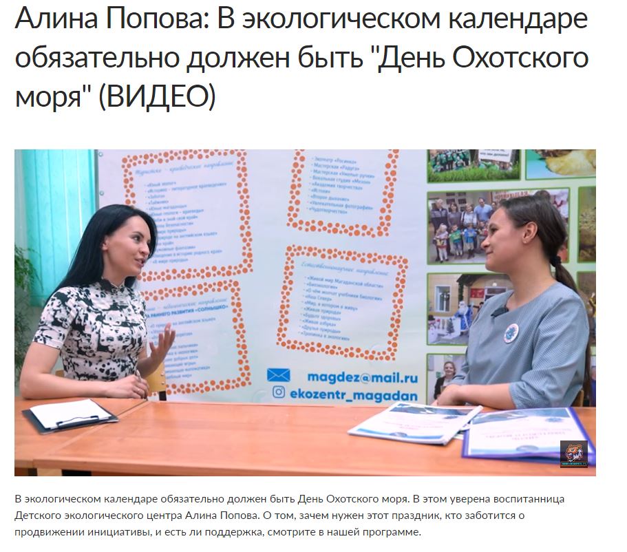 Финалист Водного конкурса-2022 из Магаданской области Алина Попова рассказала в интервью изданию "Вечерний Магадан" о своем проекте "День Охотского моря", представленном на финале, и о планах по созданию молодежного водного сообщества у себя в регионе.